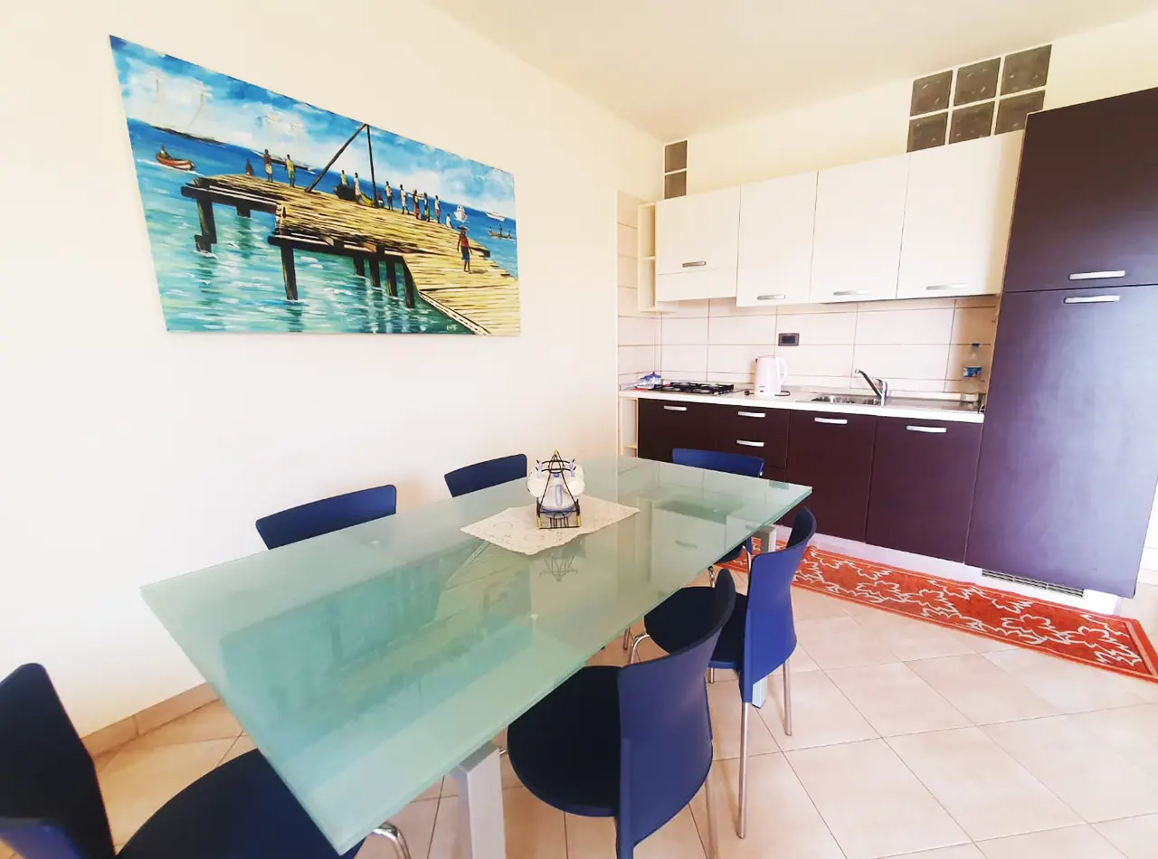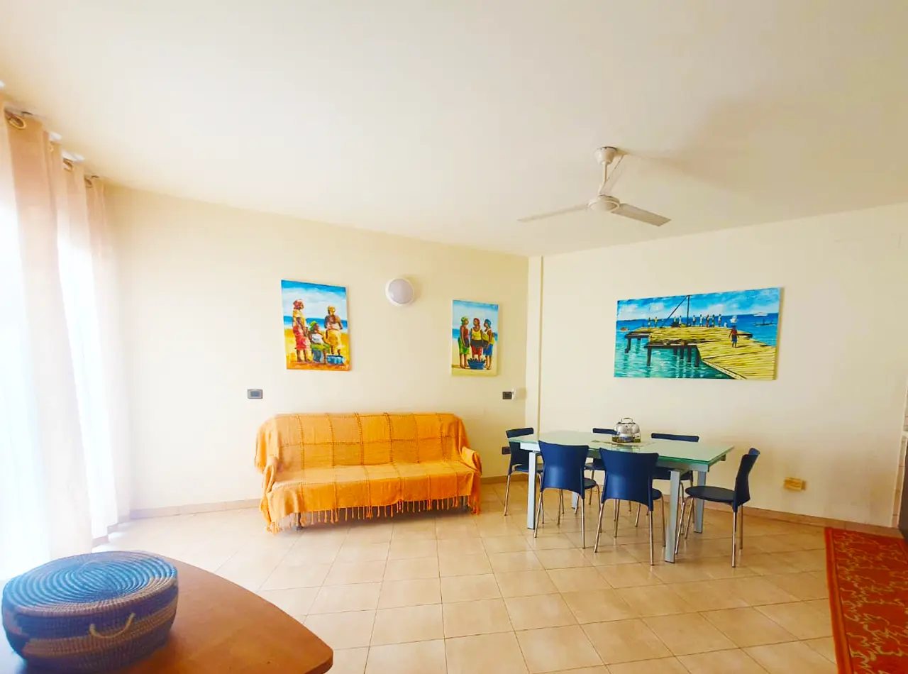 The apartment offers an airy and well-lit living area designed for relaxation and comfort. This welcoming space is ideal for socializing or simply unwinding. The sea view from the window or terrace adds to the pleasant ambiance.